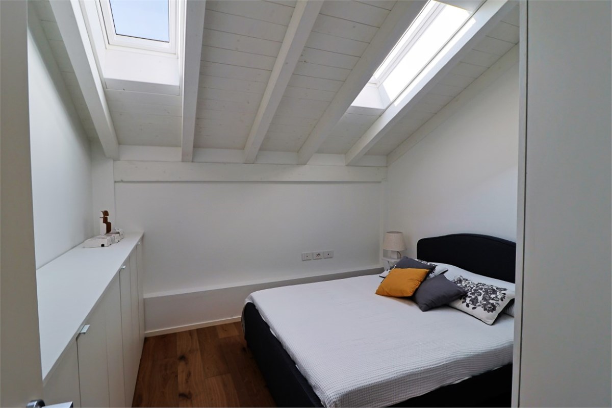 Arredamento: su misura, tranne la seconda camera da letto che è fornita solo di un armadio. I pavimenti sono in parquet di ottima qualità.