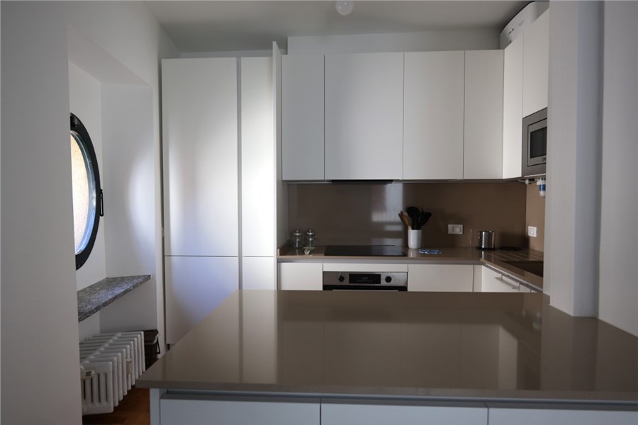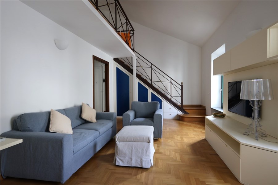Si compone di un ingresso, un elegante soggiorno/pranzo, ampia cucina a vista arredata con mobilio su misura appena realizzato da un artigiano, un bagno nuovissimo e, nella zona soppalcata, una graziosa camera da letto.