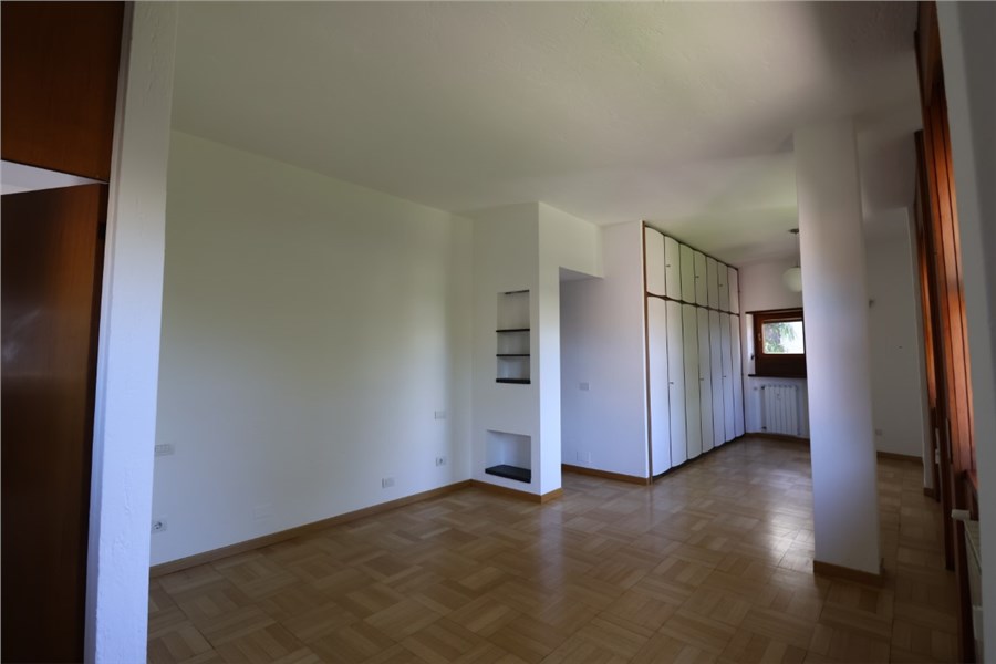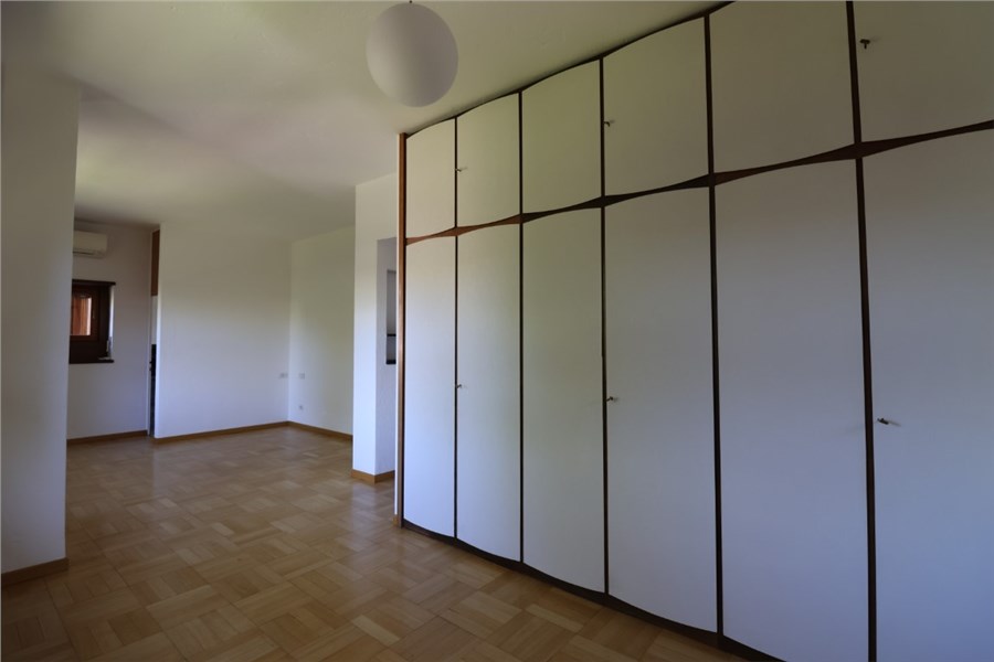 Arredamento: cucina arredata, varie librerie e abbondanza di armadi a misura.