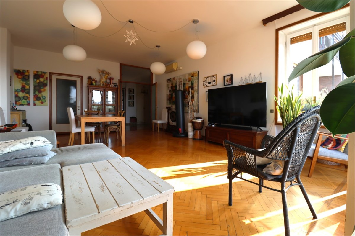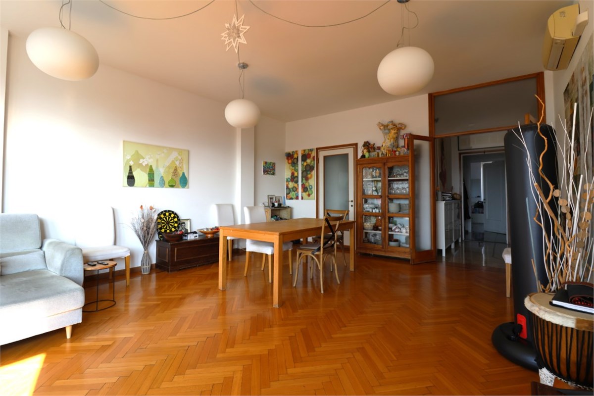 Situato al sesto piano, l’appartamento di circa 140 mq si distingue per la straordinaria luminosità e per la vista aperta e suggestiva sulle ville storiche e sulle tranquille vie residenziali circostanti.