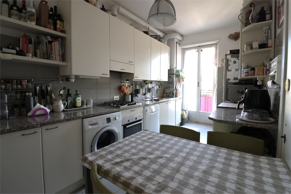 La distribuzione degli spazi è armoniosa e funzionale; un ampio living con zona pranzo e accesso a un terrazzino vivibile. La cucina è abitabile e completamente arredata. La zona notte comprende tre camere da letto, di cui due con balcone e due bagni. Completano la proprietà diverse armadiature.