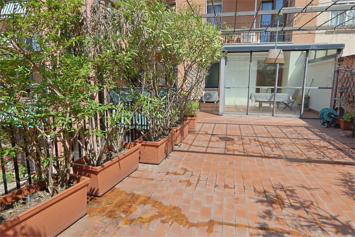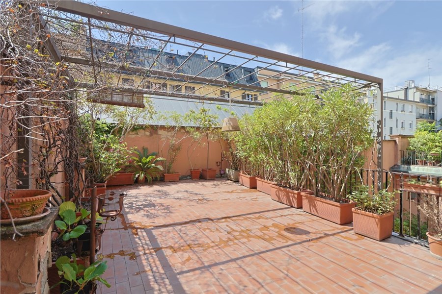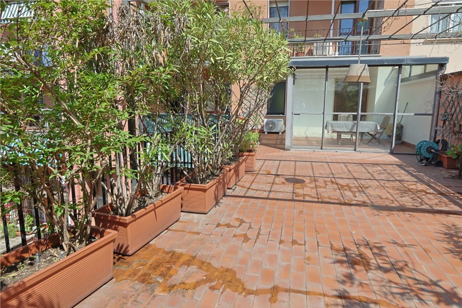 This quiet, bright 95sqm apartment has a beautiful 90sqm terrace partially with veranda. It is located on the 3rd floor of a modern and elegant building with half-day concierge service.