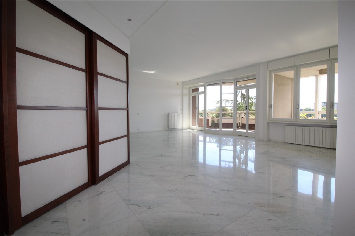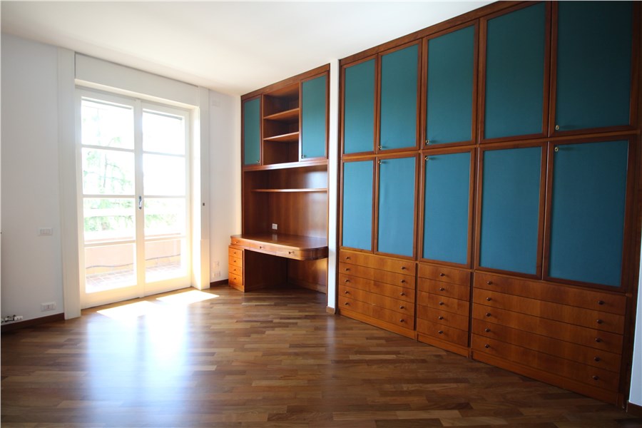 Lo spazio abitativo si compone di un ampio ingresso accogliente con armadiature su misura, aperto su uno spazioso soggiorno, con deliziosa zona pranzo, che prosegue all’esterno con un bel terrazzo con una vista aperta sul verde. L’appartamento è caratterizzato da quattro camere da letto di cui una padronale con un bagno en suite e cabina armadio, un secondo bagno (entrambi corredati di vasca e doccia), un bagnetto di servizio, una piacevolissima cucina abitabile con terrazza dove è possibile consumare comodamente i pasti, una piccola zona lavanderia, 2 ripostigli e una stireria. Si tratta di un immobile di pregio, molto ben organizzato, con elettrodomestici di qualità.