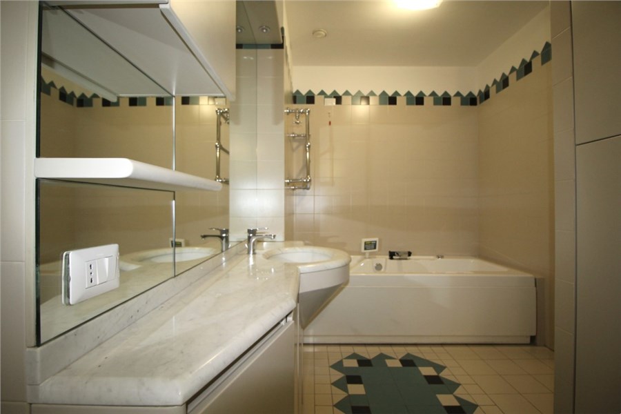 Air conditioning. Floors are sophisticated Carrara marble and parquet. Central heating. Double garage. This building boasts one of the most beautiful condominium pools (with changing rooms) in Milan.