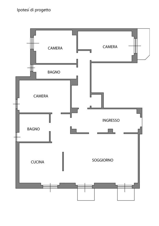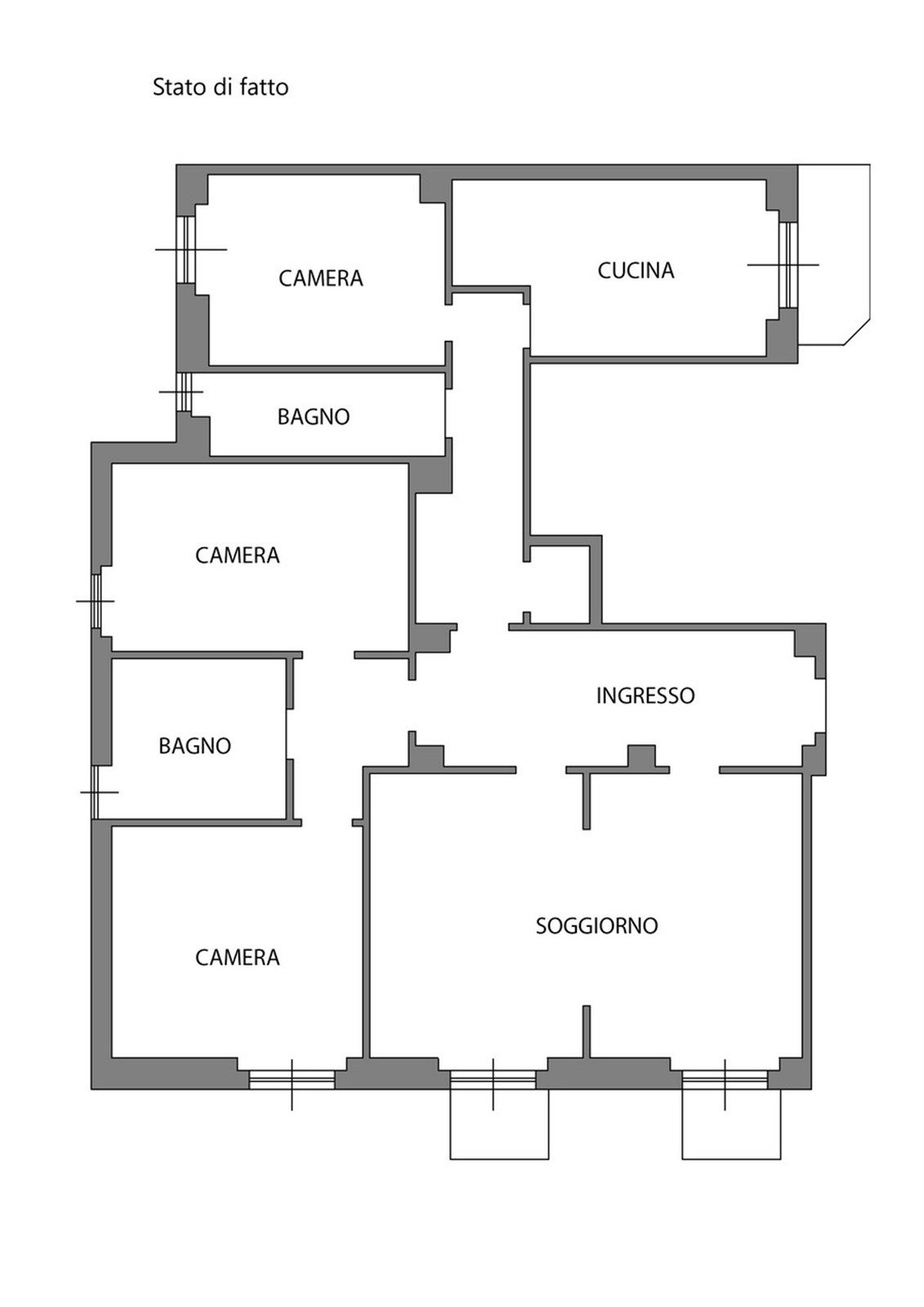 Internamente l’appartamento è da ristrutturare e può essere progettato secondo le proprie esigenze ma la piantina attuale è molto razionale con un’ottima distribuzione degli spazi interni.