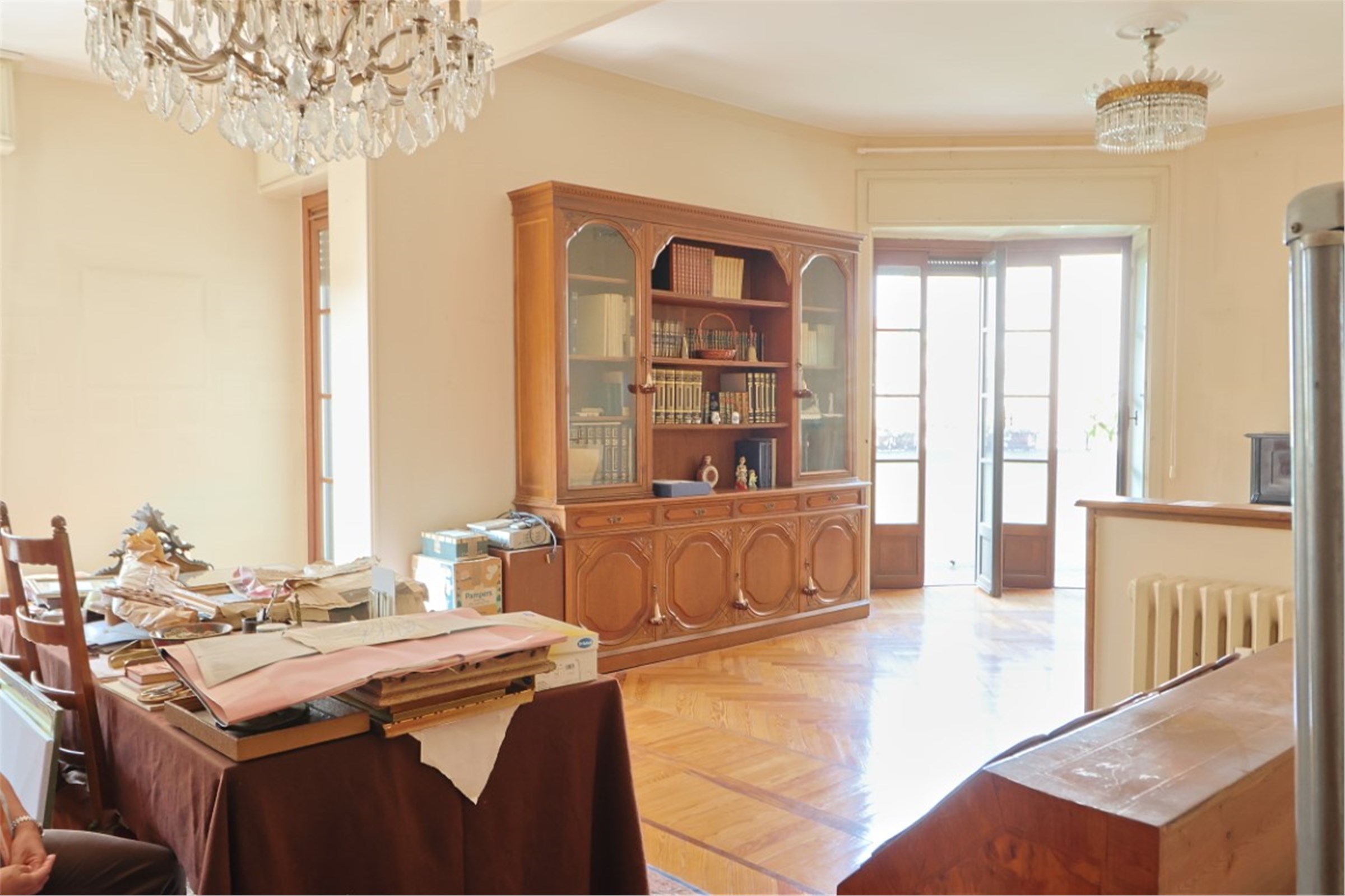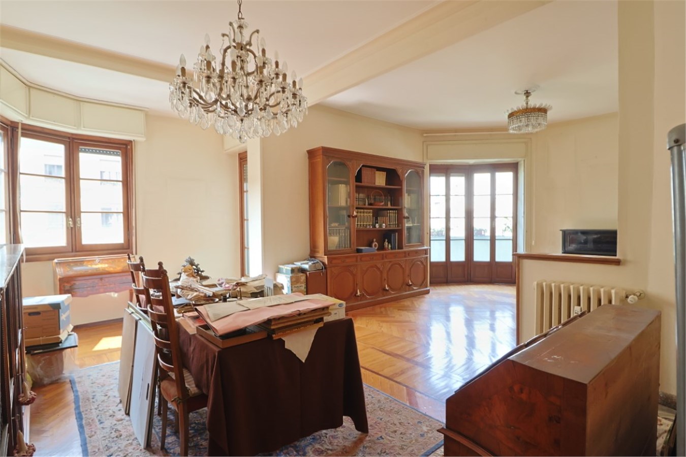 I serramenti esterni sono in legno con i caratteristici doppi vetri riquadrati come d’uso nelle belle case d’epoca.