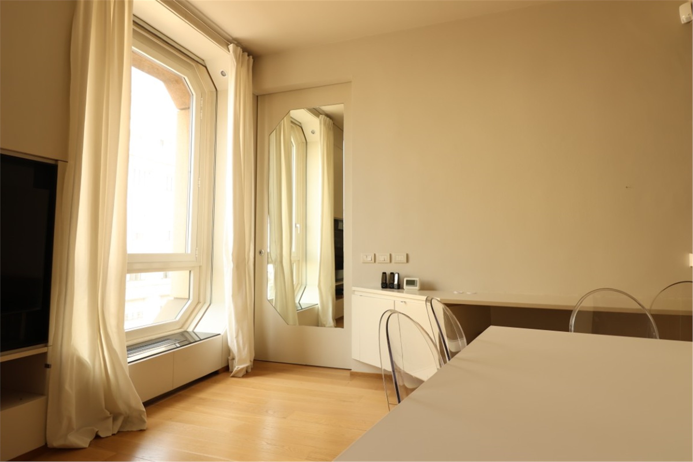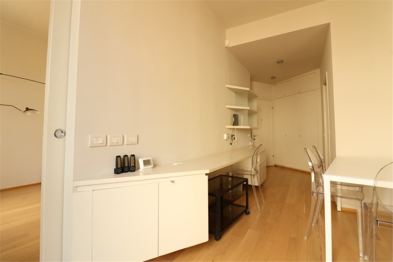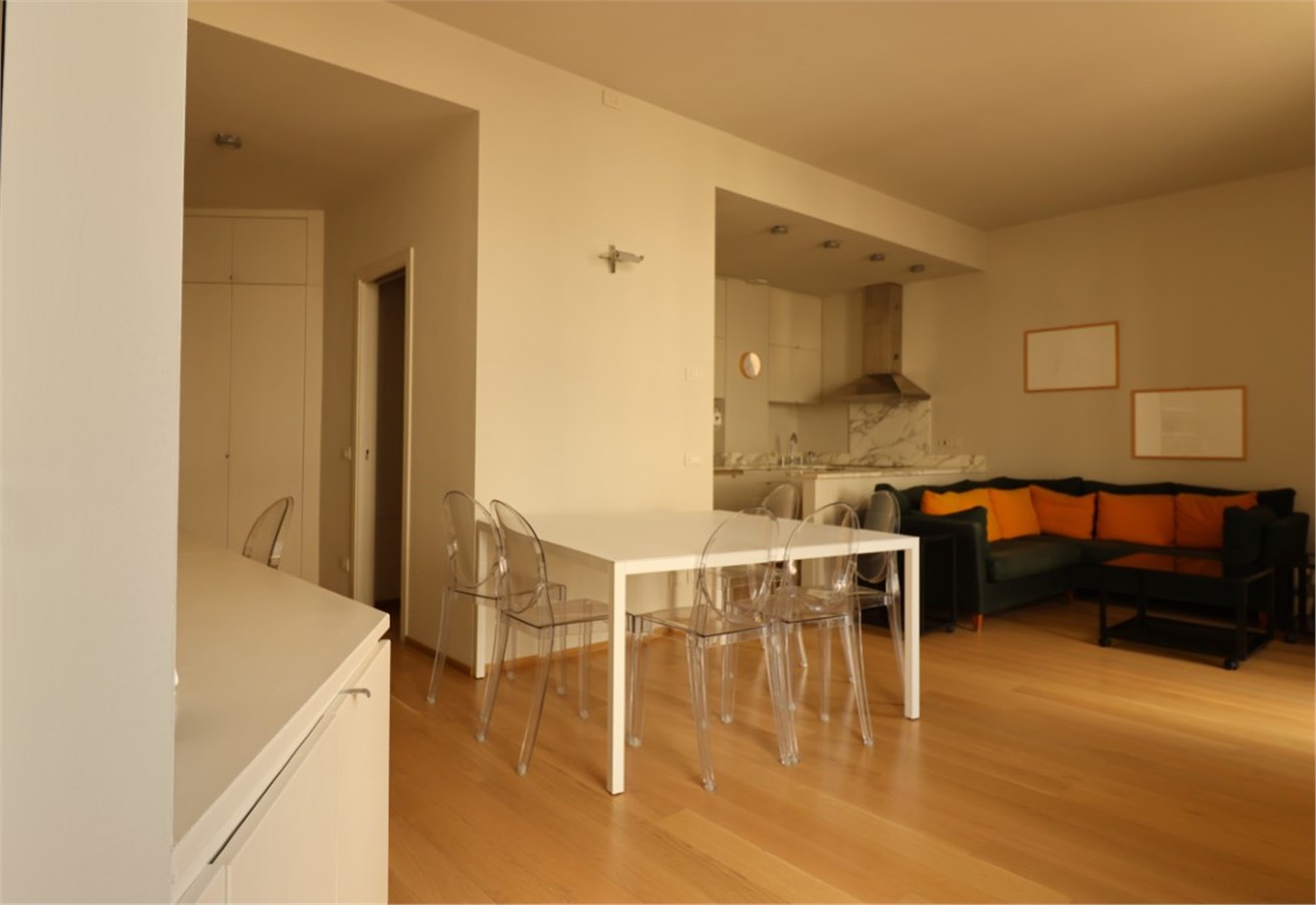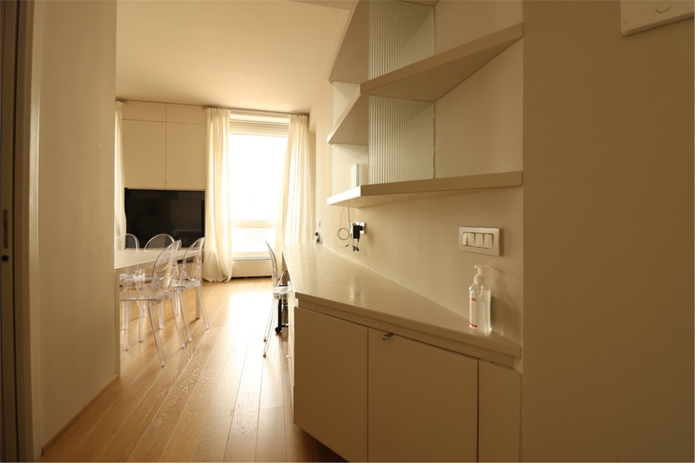 La proprietà è composta da un ampio soggiorno con zona pranzo e angolo studio, una cucina separata a vista completamente attrezzata, una camera da letto luminosa e ariosa e un bagno spazioso.