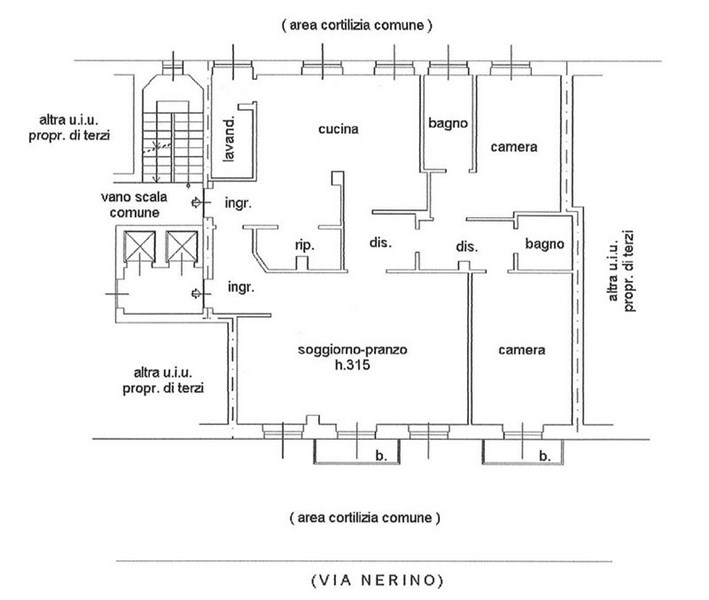 Il corpo dell’edificio prospicente Via Nerino, dove é presente il cancello del passo carraio di accesso ai box, presenta una facciata che pur non avendo elementi architettonici d’epoca, risulta essere esteticamente di ottimo livello.