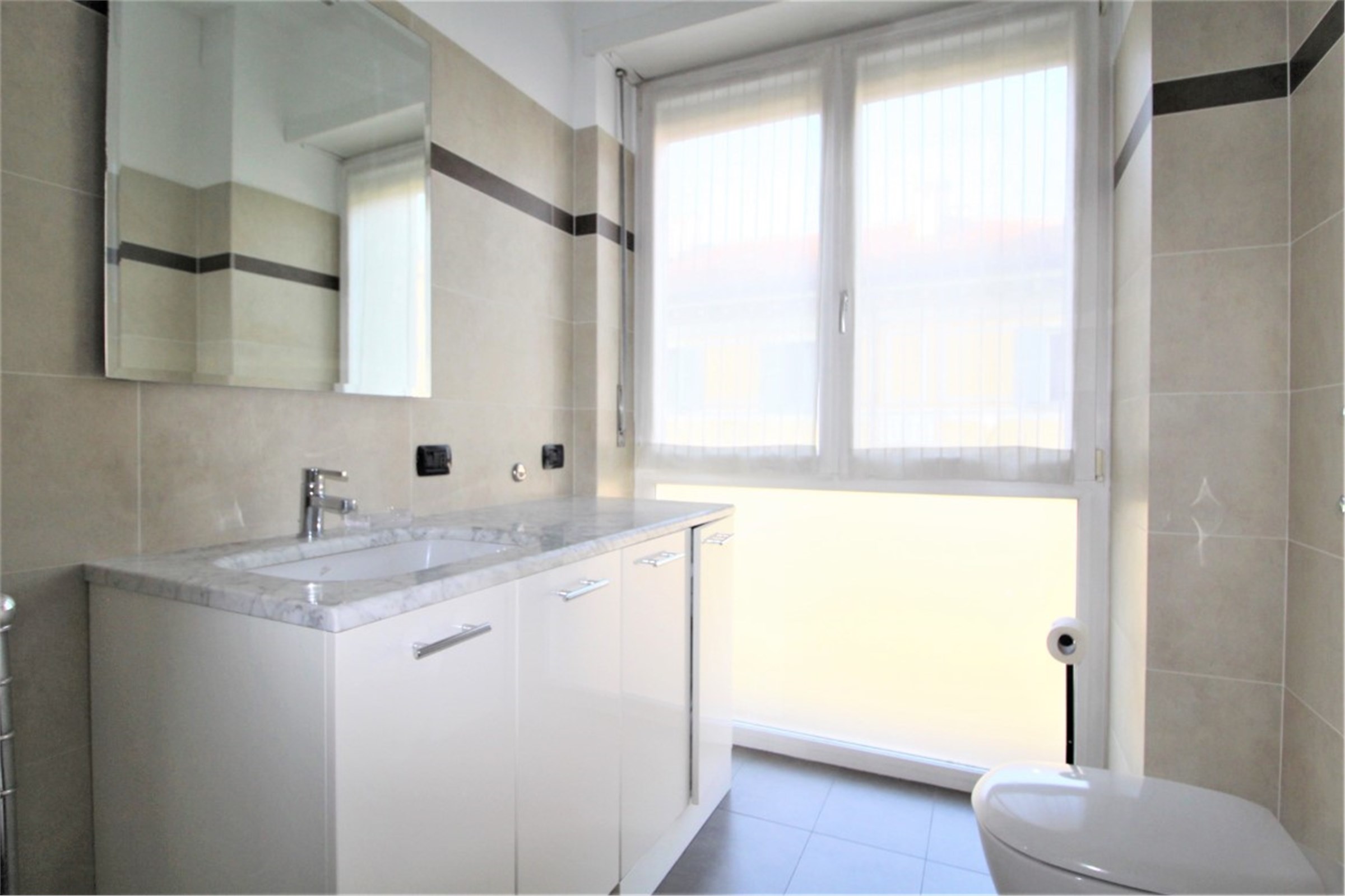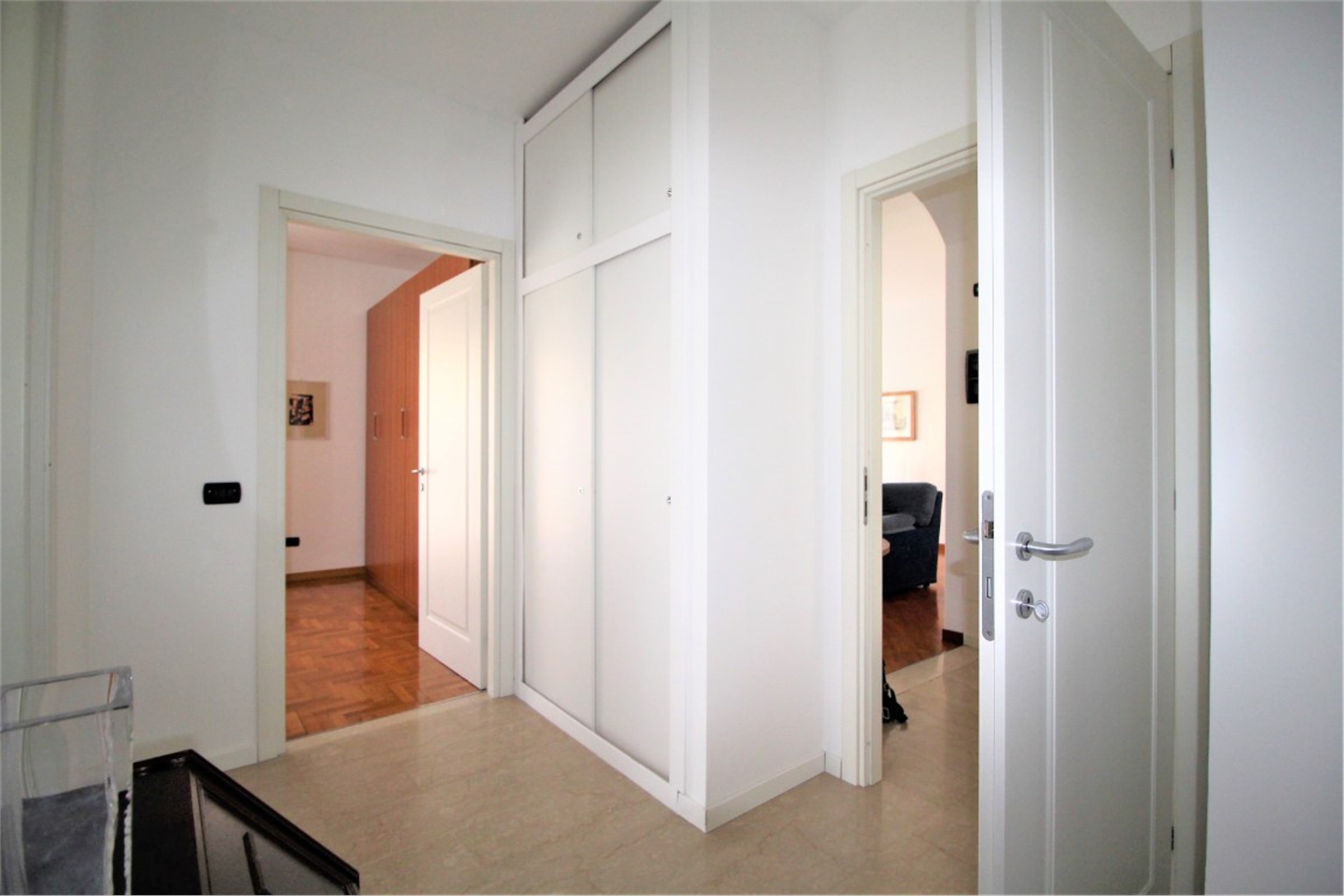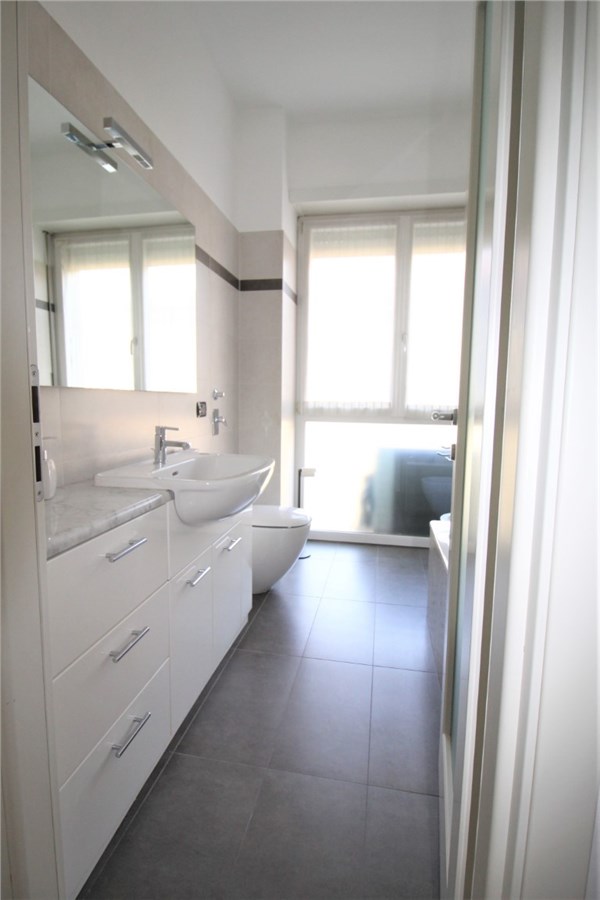 Lo stabile è moderno con servizio di portineria e l’appartamento, 4° piano ristrutturato recentemente, è luminosissimo con validissime finestre doppie La superficie di 110mq, al 4° piano, è composta da soggiorno/pranzo, due camere da letto matrimoniali, due bagni, ampia cucina abitabile. Aria condizionata. Possibilità posto auto a un costo extra.