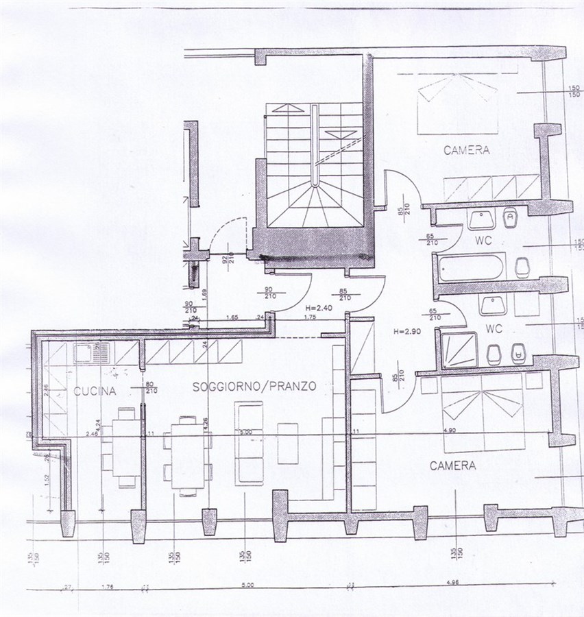 Monthly rent € 1.800,00 (private contract) and € 2.100,00 (contract company) in addition to € 300,00 for condo expenses including central heating. Energy Class F kWh/m2a 171.6. Available.