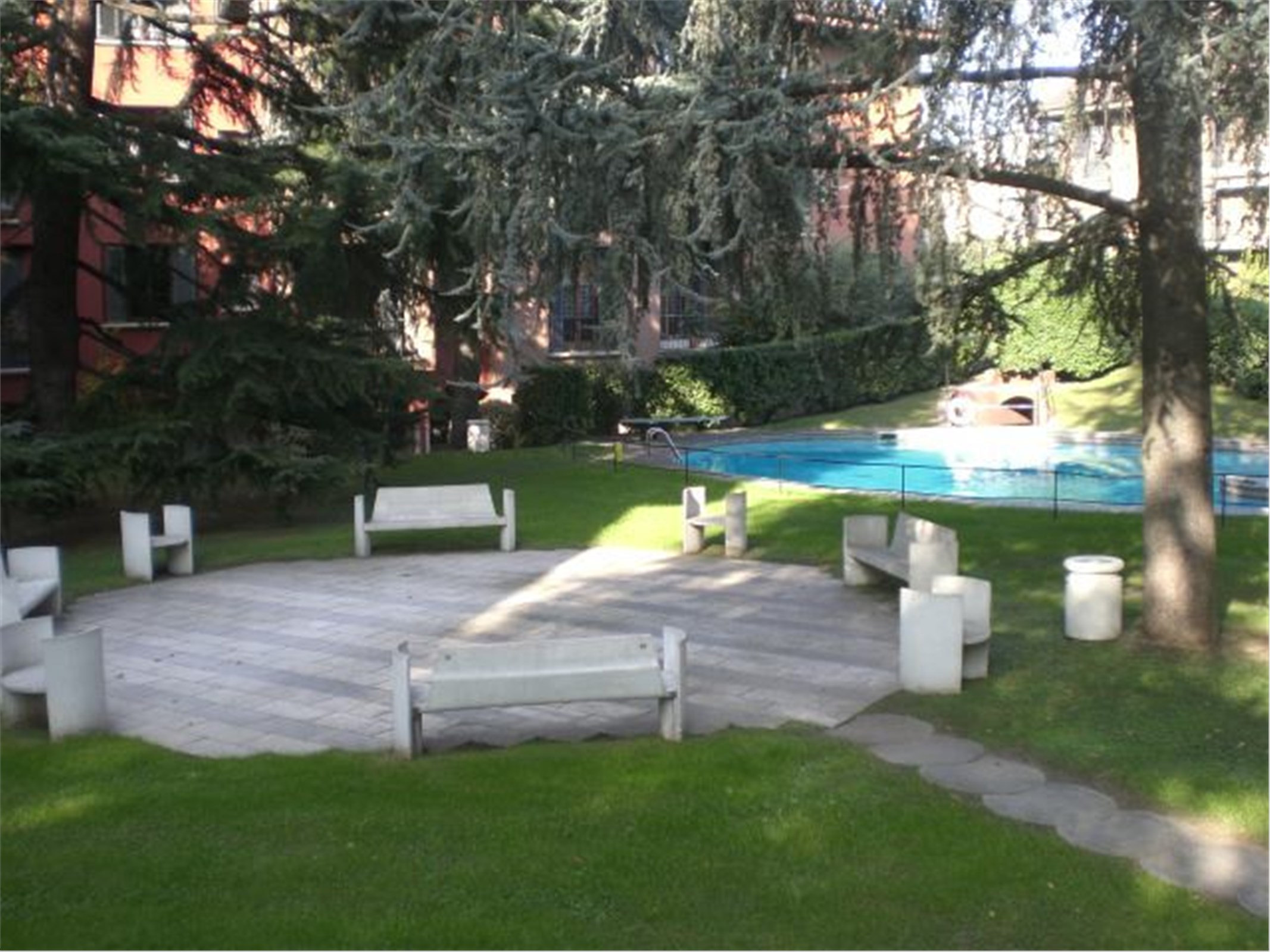 Via Osma Carlo - zona San Siro, MM Lampugnano. In tranquillissimo complesso residenziale signorile e riservato con servizio di portierato 24h, piscina, delizioso giardino condominiale, tranquillo appartamento di 140mq al primo piano prospiciente il verde. Lo spazio abitativo si compone di soggiorno, 3 camere da letto, 2 bagni, cucina abitabile con balcone, garage. Arredamento: cucina arredata nuova e armadiature. Pavimenti in parquet. A/C. Canone mensile comprese spese condominiali, riscaldamento centralizzato e acqua calda € 2.025,00. Disponibile. Classe Energetica E 122,78 kWh/m2a. SOLO CONTRATTO IN CEDOLARE SECCA.