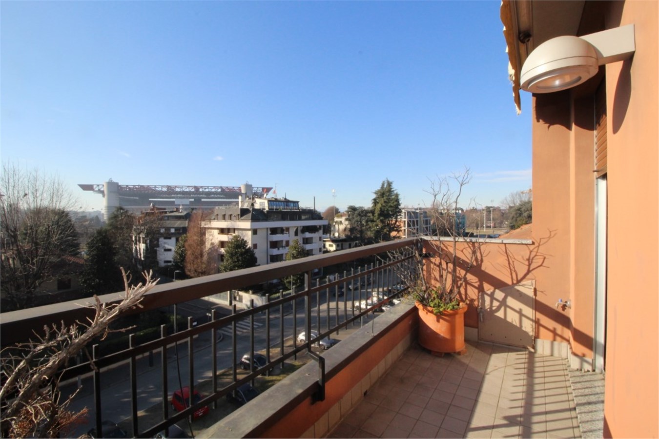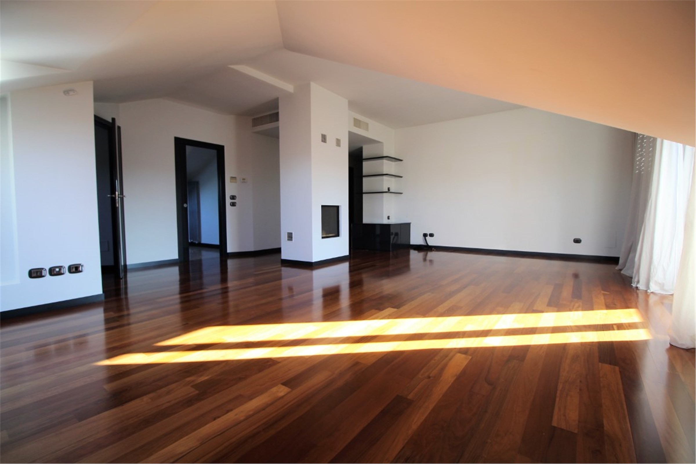 ZONA San Siro, Via Palatino - MM linea Lilla, fermata San Siro Ippodromo. In quartiere tranquillo e ben abitato, elegante palazzina moderna di medie dimensioni, con grazioso giardino condominiale, mansarda signorile, recentemente ristrutturata con materiali di alto standing. Si tratta di uno spazio abitativo di 100mq al 5° piano di un elegante immobile dotato di portineria (mezza giornata), ascensore e eventualmente garage. L’appartamento, molto luminoso, si compone di un soggiorno con camino, una camera da letto, una ulteriore piccola camera, un ampio bagno nuovo con doccia e vasca idromassaggio, un bagnetto di servizio, una bella cucina abitabile arredata, due balconcini. Aria condizionata. Arredamento: di qualità con alcuni armadi su misura. Pavimenti in marmo e parquet. Canone mensile € 2.000,00 più € 210,00 di spese di condominio salvo conguaglio, oltre riscaldamento autonomo. Possibilità ampio box auto al prezzo di € 200,00 mensili.