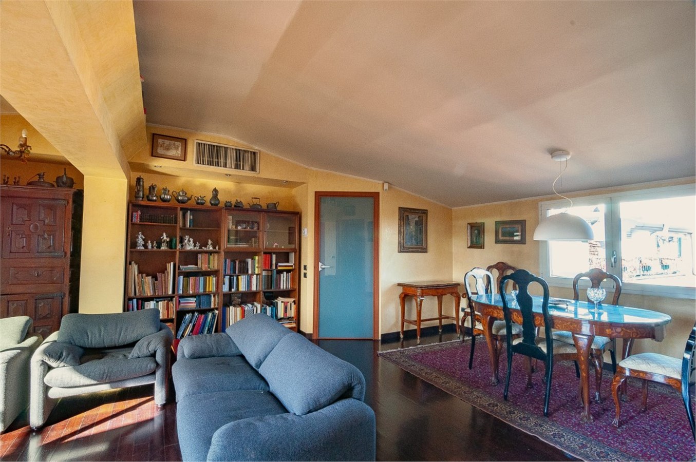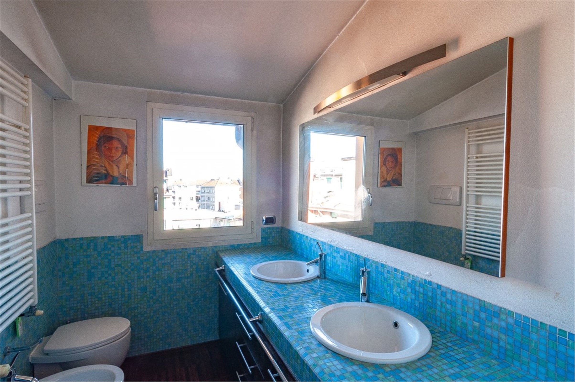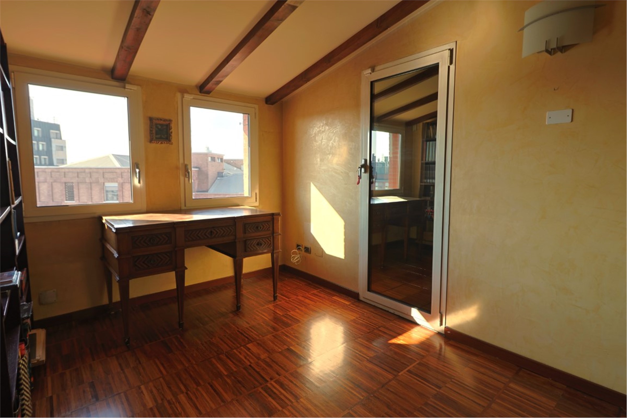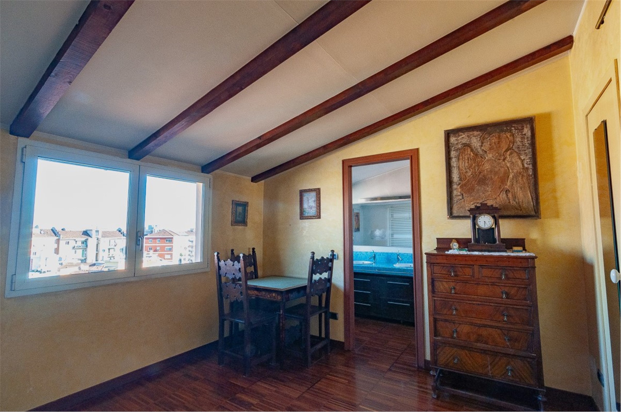 La soluzione abitativa è frutto di un geniale recupero dei sottotetti: l’appartamento si trova all’8° e ultimo piano e gode quindi di una bellissima esposizione panoramica, un affaccio arioso e riservato.