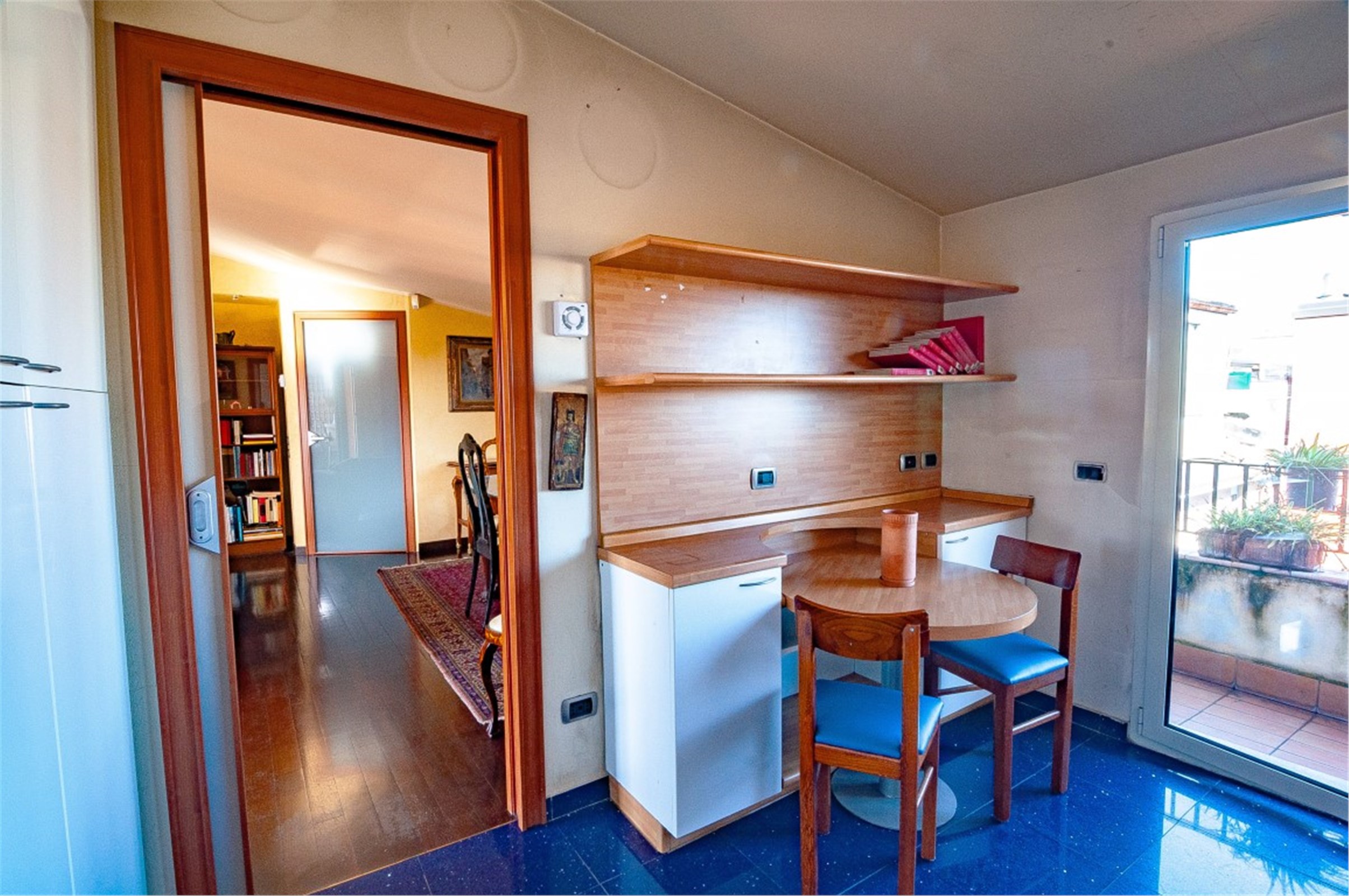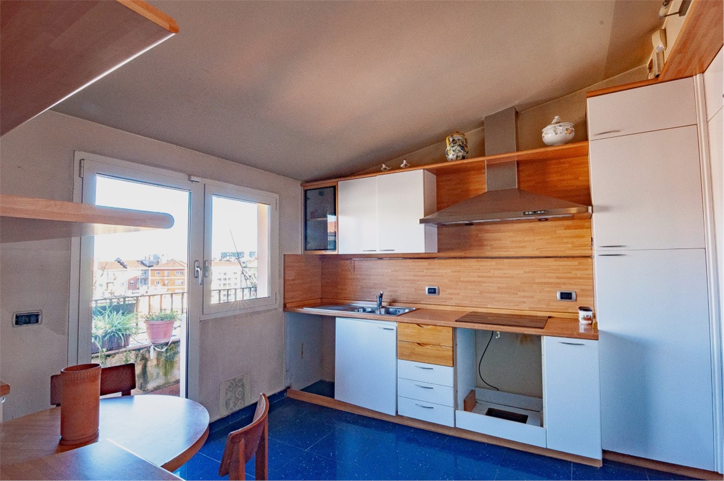 Si prosegue poi verso la cucina, di dimensioni generose, dotata di un grazioso terrazzino, molto funzionale e pratico.