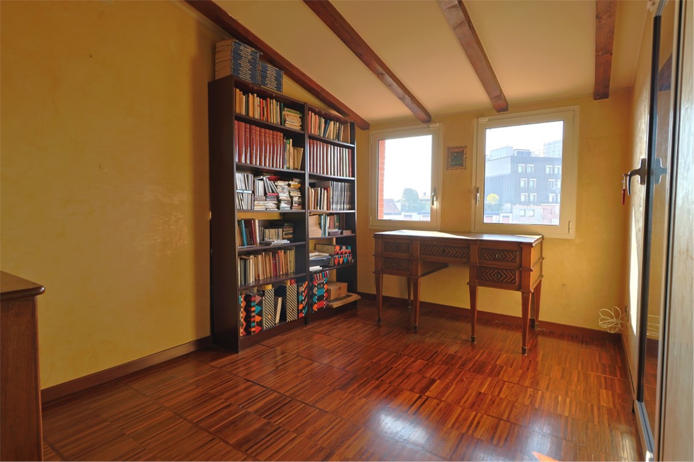 The property is the result of an ingenious renovation of attics: the flat is located on the 8th and last floor and therefore enjoys a beautiful panoramic exposure; an airy and reserved view.