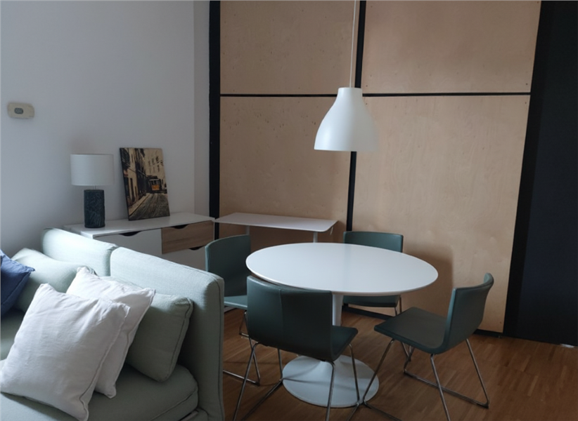 The 48 sqm living space is very cozy and detailed, located on the third floor of a typical, quiet, and well-maintained "ringhiera" building (with lift). It consists of an open entrance to the living room and dining area with an open-plan kitchen. It continues with a beautiful, bright bedroom equipped with a walk-in closet and a storage bed, and an elegant, spacious bathroom with a very large shower. Doble glaze. Parquet floors. The apartment is furnished with modern, custom-made furniture, well-designed to maximize every space.