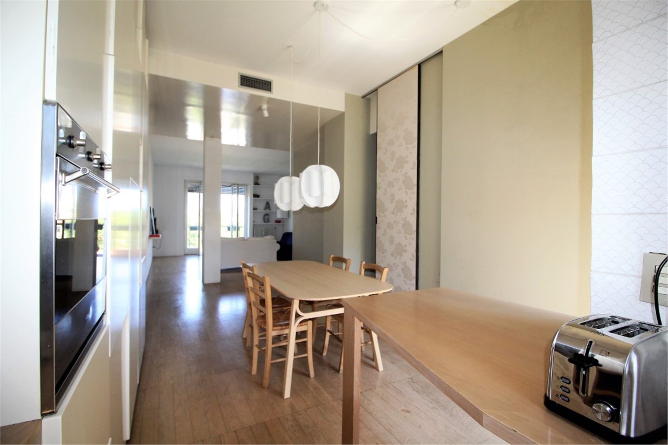 Light is the protagonist of this beautiful modern flat of 120sqmt, 6th floor, which boasts a beautiful view over the trees.