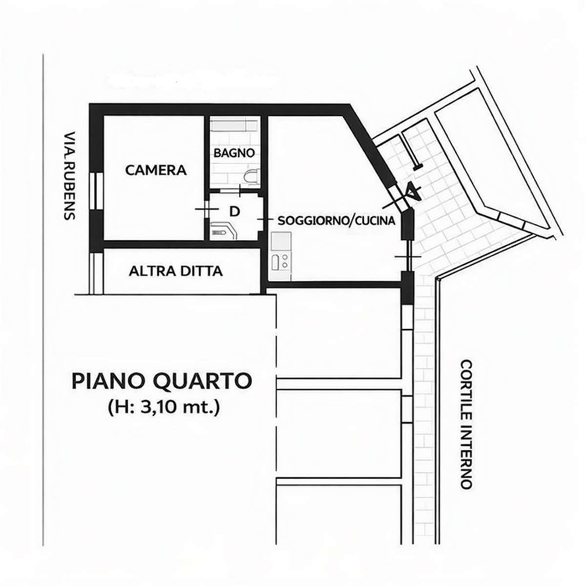 We have in Via Rubens in the immediate vicinity of Piazza De Angeli, a nice one bedroomed apartment recently renovated in the context of a “casa di ringhiera” totally restored and well maintained.