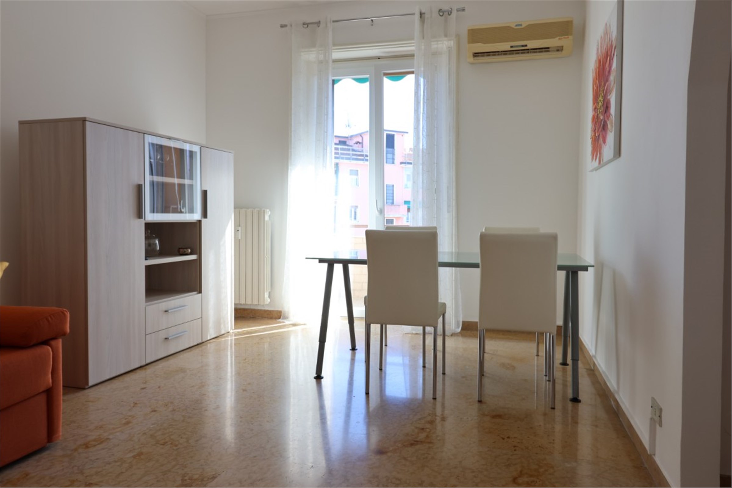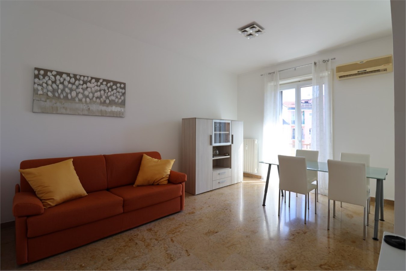 L’appartamento è posto al 7° piano e si compone di un ingresso, soggiorno con balcone prospicente il cortile interno, cucina abitabile, una camera da letto con balcone, bagno recentemente ristrutturato.