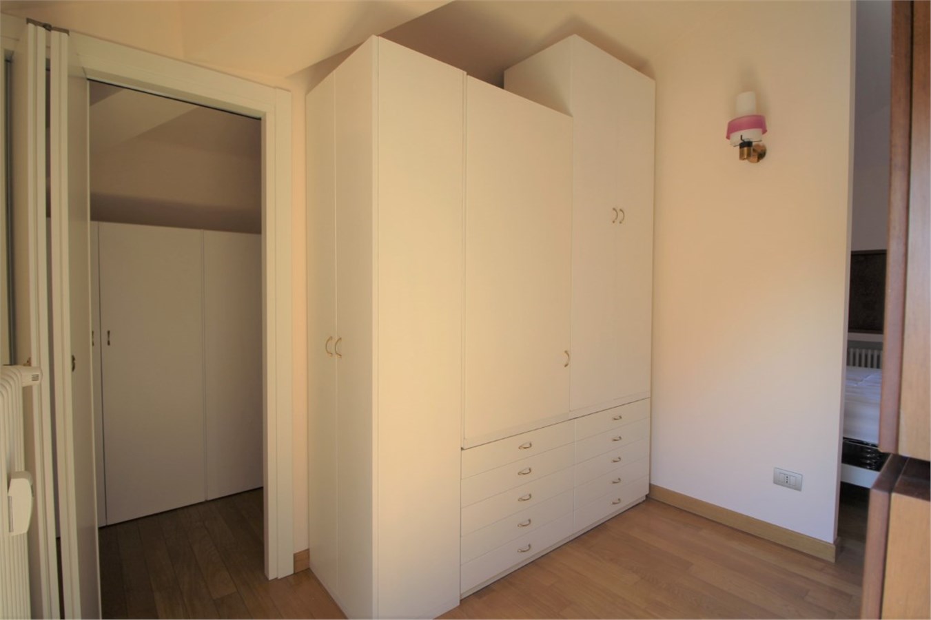 Arredamento: cucina arredata e numerose armadiature su misura e un letto matrimoniale (che deve rimanere).